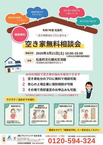 連携事業として下記のとおり、『令和7年度 松島町空き家無料相談会』を開催します。