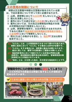 さらに、林野火災の予防上危険な気象状況が確認された場合などには、「林野火災警報」を発令します。