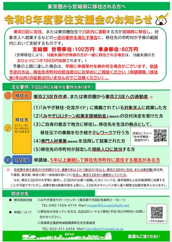令和8年度移住支援金のお知らせチラシ(宮城県).pdf [ 878 KB pdfファイル]