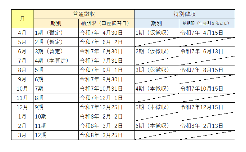 この場合、9月の中旬頃に5月から翌年3月までの11ヶ月分の年税額を計算した納税通知書を世帯主宛に送付します。納期は9月から3月までの7回で納付する必要があります。