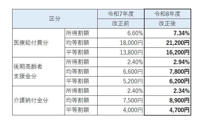 ※これらの税率については令和8年7月中旬頃にお知らせする令和8年度国民健康保険税納税通知書(本算定賦課)から反映される予定です。